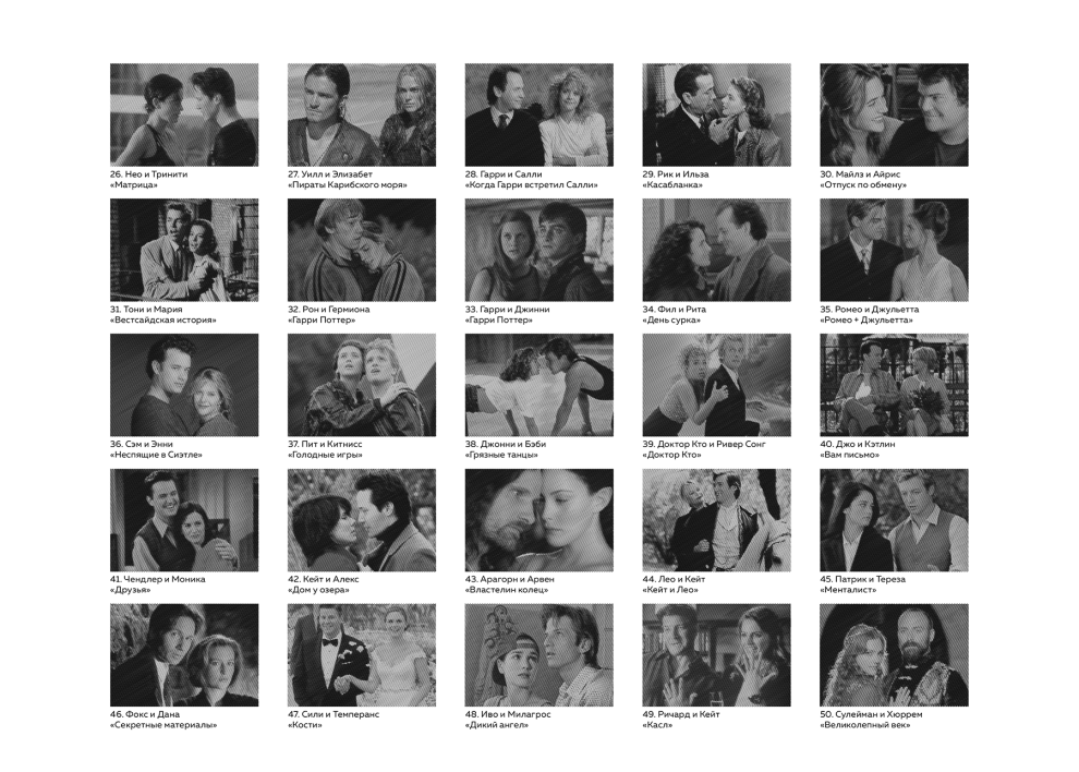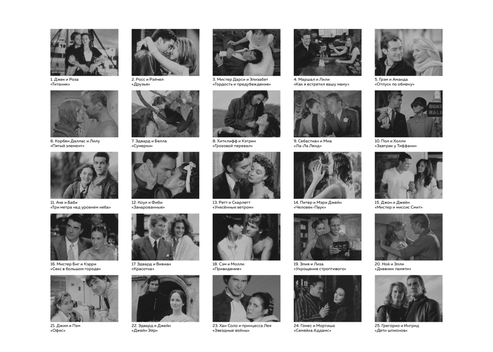 Раскраска полоски Влюблённые пары из кино и сериалов А4